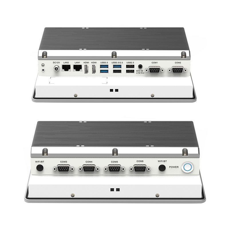 低功耗:英特爾® 賽揚® J6412 板載處理器,TDP 10W外觀設(shè)計:鋁合金一體成型,工藝精細,科技時尚穩(wěn)定可靠:純工業(yè)無風(fēng)扇設(shè)計,大面積鋁鰭散熱,箱體材質(zhì)可抗接觸式6Kv強電磁干擾;液晶屏接觸處加強型密封膠圈設(shè)計,面板防水防撞擊人機界面友好:純屏10點工規(guī)電容觸控,操作更便利接口豐富:2*LAN(Intel),6*COM,3*USB3.0,3*USB2.0,2*HDMI,1*M.2(KEY-M,2280,支持PCIE x2信號 NVME SDD),1*Mini PCIE(全高,PCIE+USB信號,支持WIFI/BT)