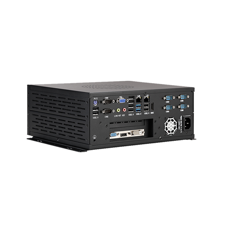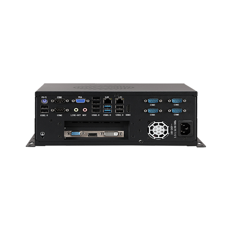 外觀設(shè)計(jì) : 噴砂黑色外殼,工藝精細(xì),科技時(shí)尚高性能 : 支持4/6/7/8/9代Intel LGA1150/1151接口全系列處理器穩(wěn)定可靠 : 純工業(yè)設(shè)計(jì),優(yōu)良的散熱結(jié)構(gòu),機(jī)箱內(nèi)置1*6015高速散熱風(fēng)扇,機(jī)箱可抗接觸式6KV強(qiáng)電磁干擾;AC100-240V輸入或者DC12V輸入(默認(rèn)AC100-240V輸入)接口豐富 : 2* Realtek LAN, 6*COM,10*USB, 8*GPIO, 1*遠(yuǎn)程開(kāi)關(guān),VGA+HDMI,支持同步和異步,支持1*Msata ,1*2.5寸硬盤(pán)位,1*MINI PCIE支持 WIFI/4G(二選一),1*PCIEX16(可支持MINI 顯卡,長(zhǎng)度180CM以?xún)?nèi))或2*PCI(可二選一)